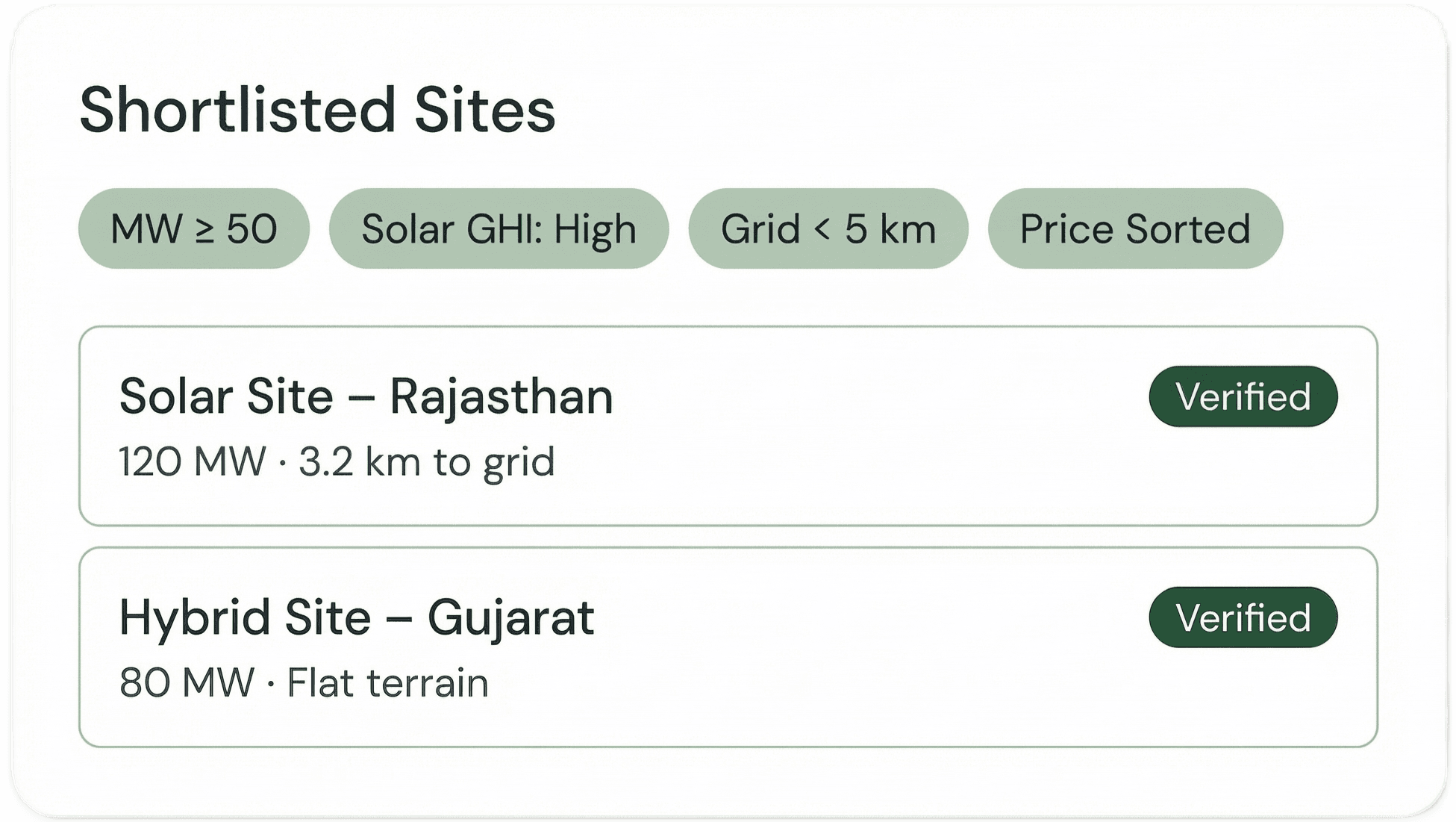 Pre-verified parcels. GIS intelligence. Risk visibility. Everything you need to move from discovery to LOI in weeks, not years. Built for solar, wind, and hybrid developers who refuse to let land be the bottleneck.